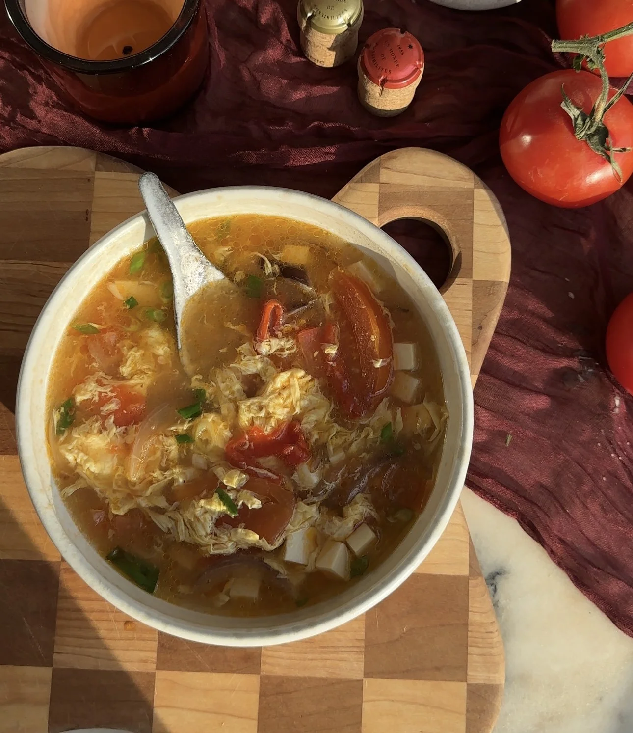 Being back in the kitchen, watching firsthand how to slowly stir in the eggs for the perfect egg wisps, or that you should cook the tomatoes + onions before adding them into the soup for added depth of flavor — I felt so much more inspired to be creative in the kitchen again.